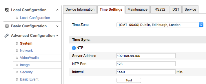 • NTP Server: Set to TetherBox IP address (usually 192.168.88.100)