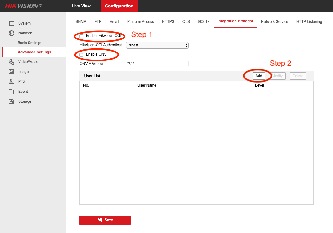 Step 1. Check "Enable onvif" under camera config. You can usually find it under: